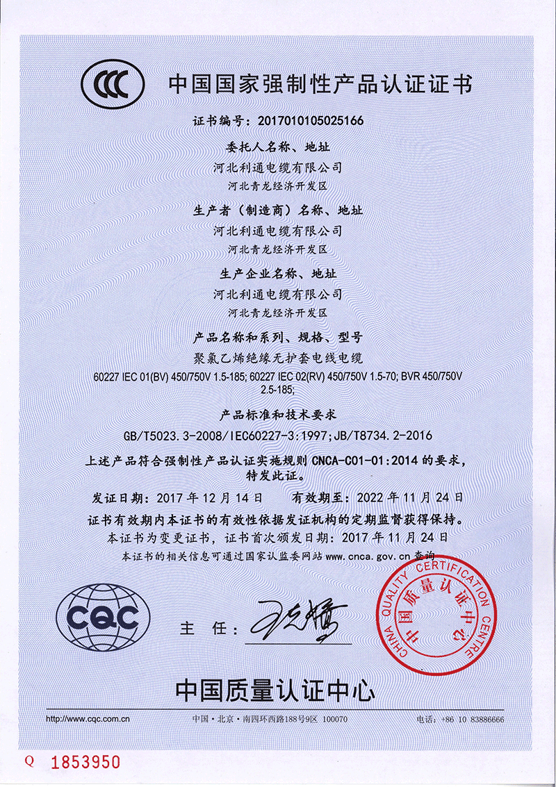 在過去的5年,利通電纜得到國家乃至世界專業機構與業界組織的高度認可,獲多項國家級 資質認證與獎項!并已經為包括全球500強在內的多家企業提供服務。